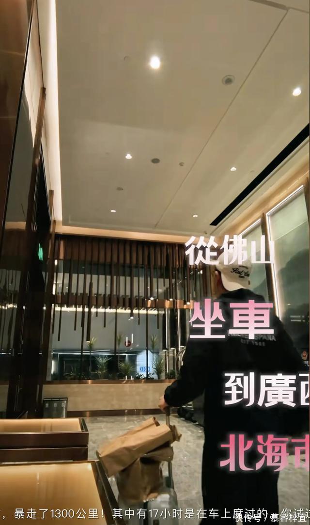 他表示自己当天早上9点半在佛山吃早餐,随后收拾行李,搭车前往广西北海市。长途奔波中,他在车上观看了近日爆红的电影《哪吒》第一集,途中累得直接睡着。 北上拼搏24小时行1300公里超勤力 在抵达北海后,他就去到了夜店登台表演,完成演出工作后,在晚上7点便起程返回香港,他在一天之内辗转内地多个城市,通勤行程合共1300公里。他在视频中表示:“自己只用了24小时就暴走1300公里,本人都觉得难以置信!”