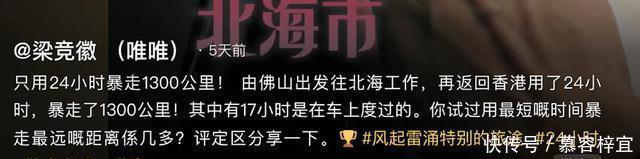 前TVB艺人梁竞徽近日在自己社交平台分享了自己的日常工作内容,内容展示了他在24小时内暴走1300公里的惊人体力与工作量。